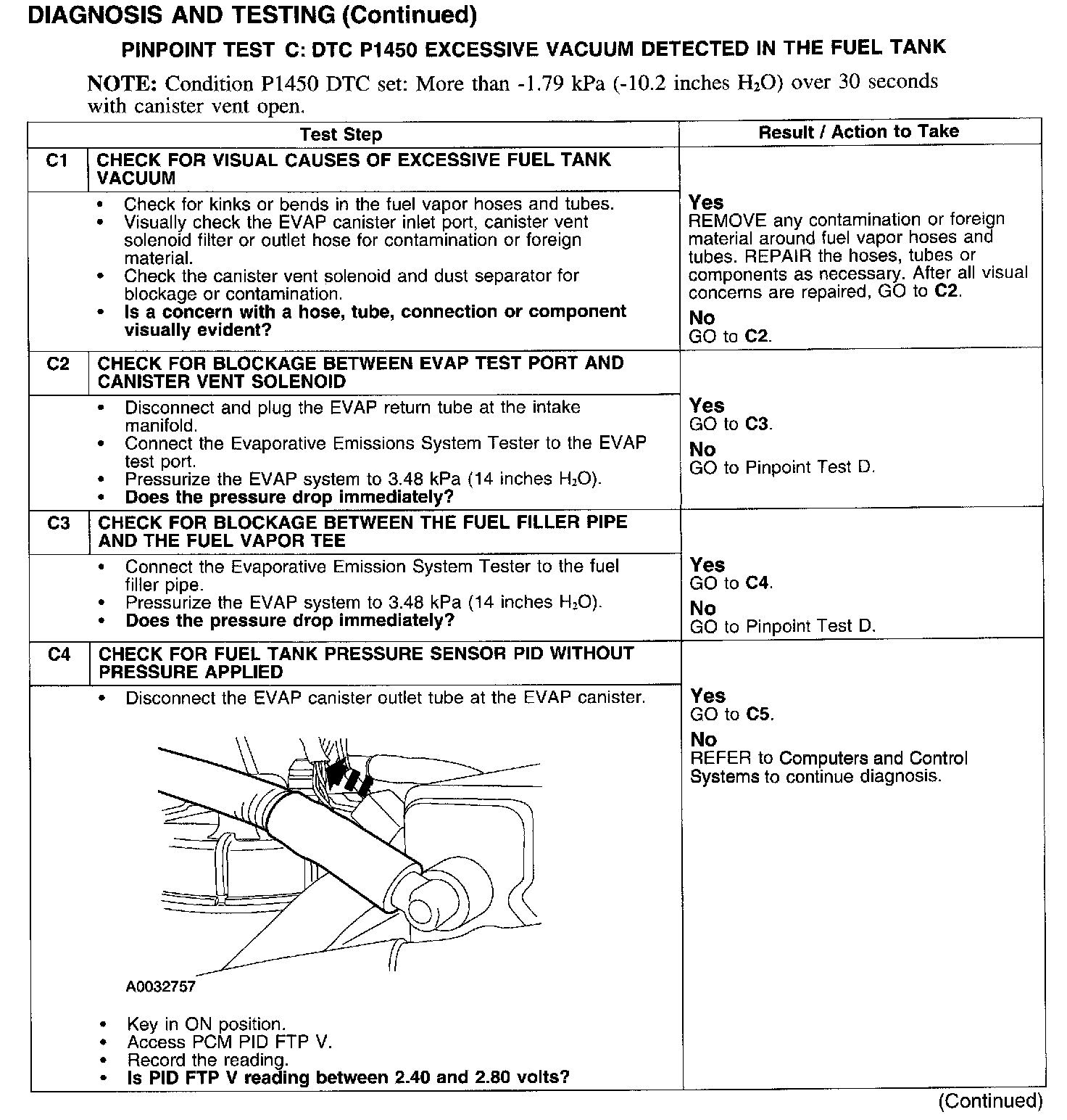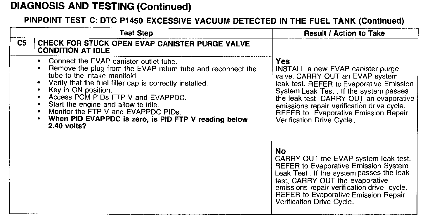 PINPOINT TEST C: DTC P1450 EXCESSIVE VACUUM DETECTED IN THE