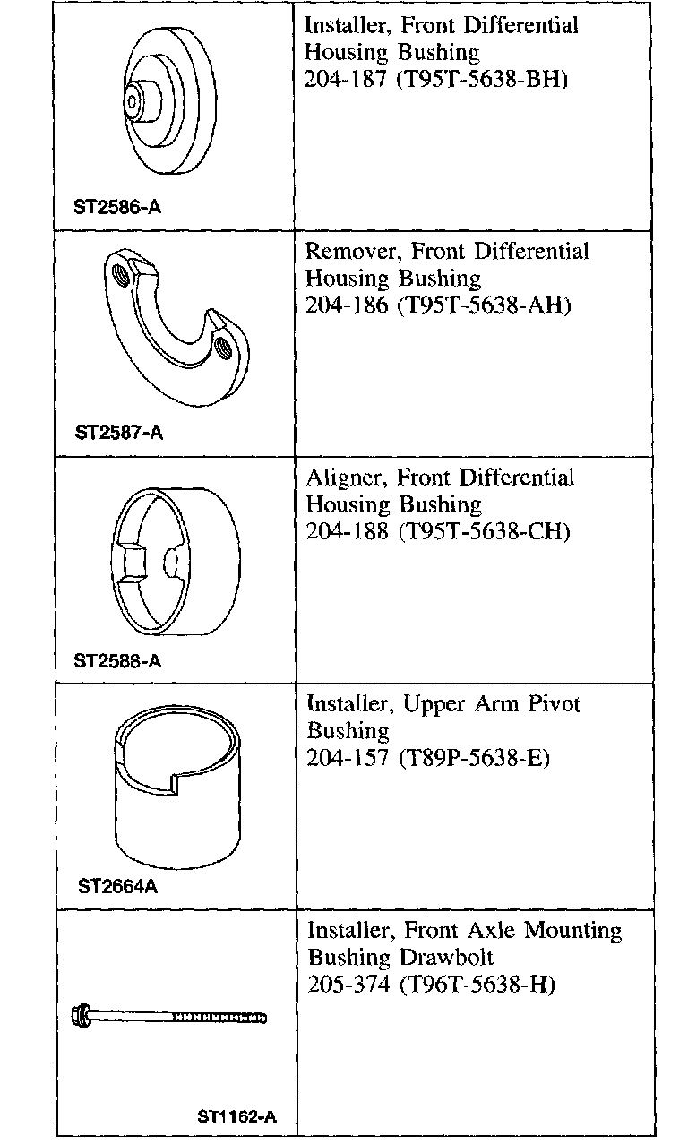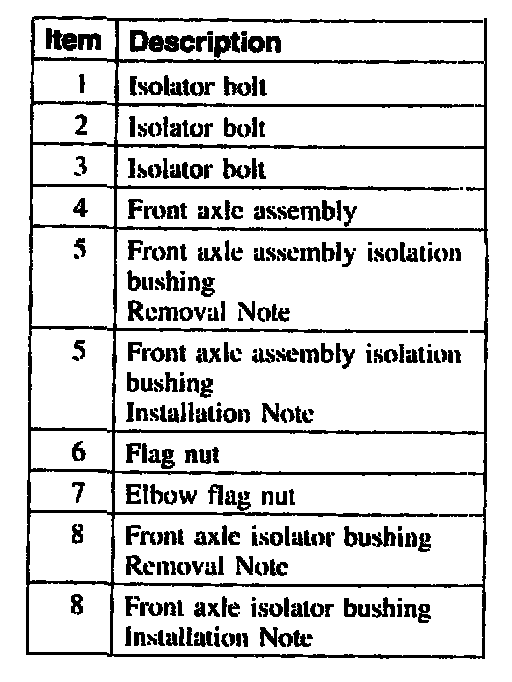 Item 5 and 8: Front Axle Assembly Isolation Bushing Removal Note