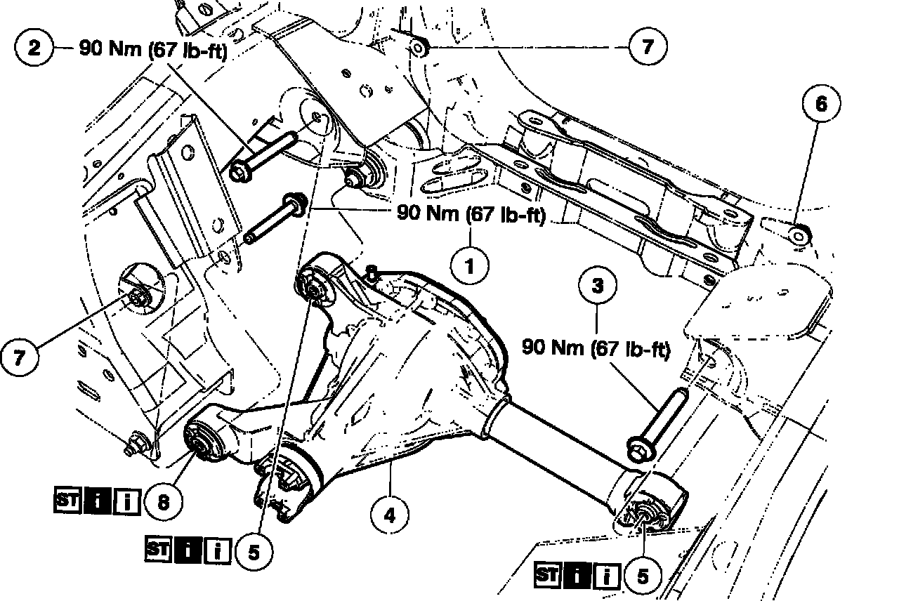 Item 5 and 8: Front Axle Assembly Isolation Bushing Installation Note