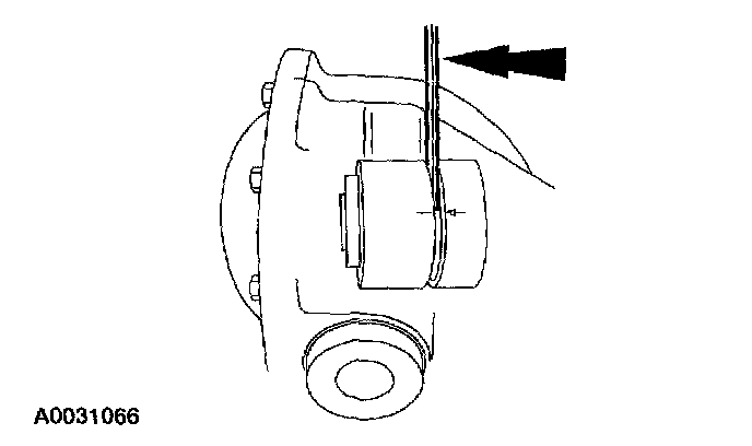 2. Using a feeler gauge, measure the gap between the bushing flange and the axle housing. Record the measurement.