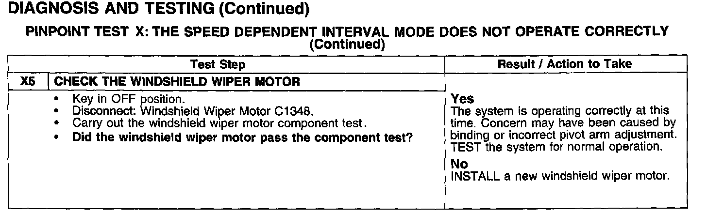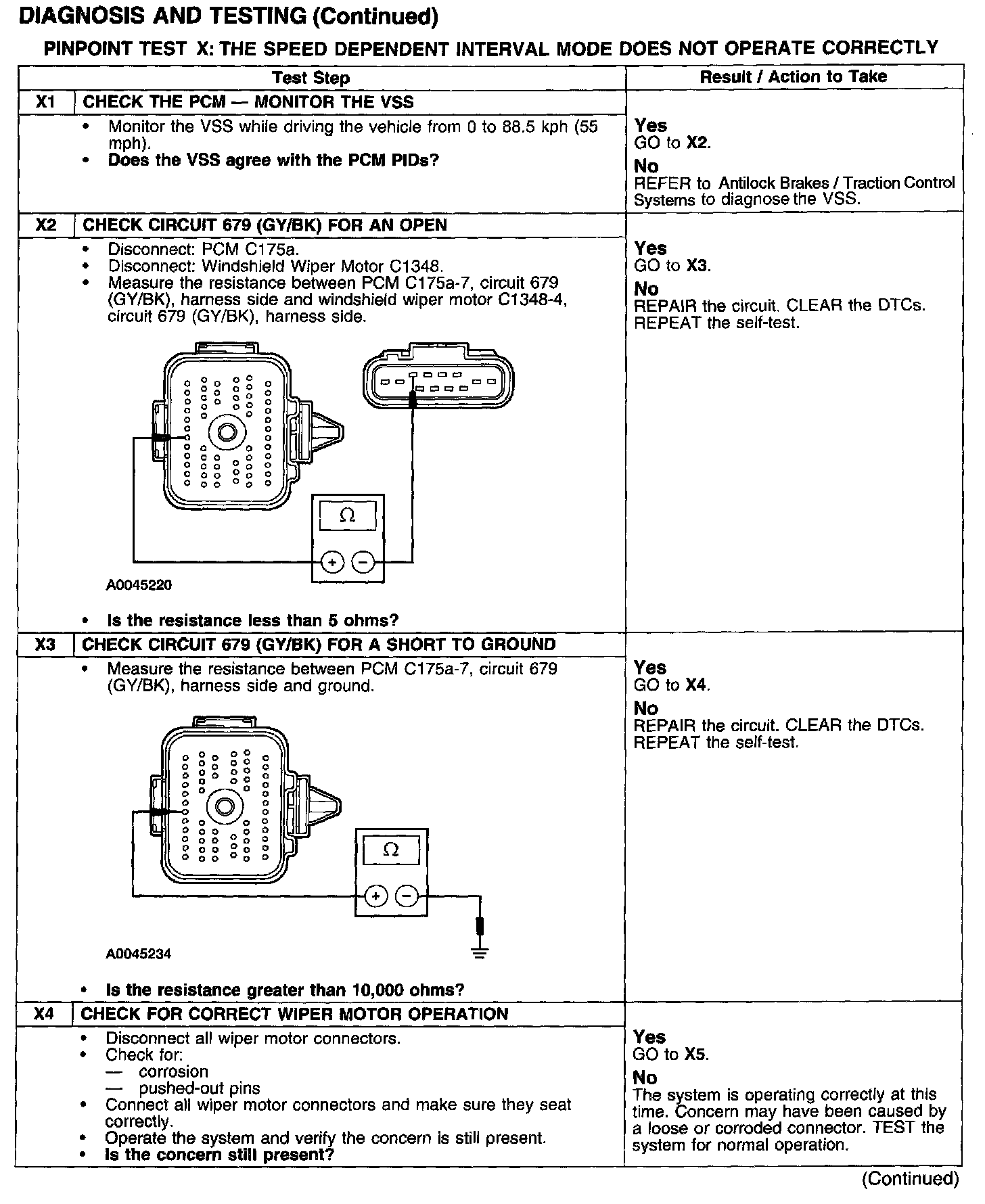 Under normal operation the wiper motor receives input from the PCM through circuit 679 (GY/BK) with vehicle speed information. The wiper motor electronics then determine the speed of the wiper motor.