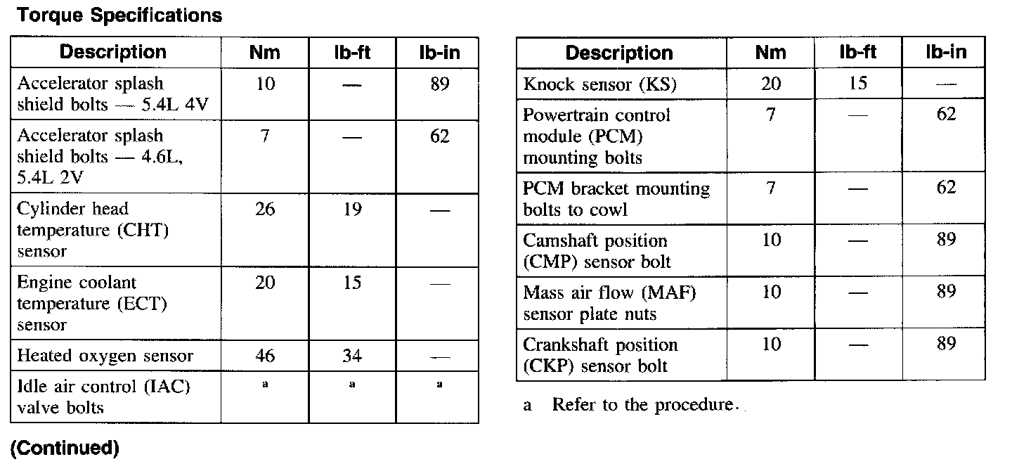 Torque Specifications: