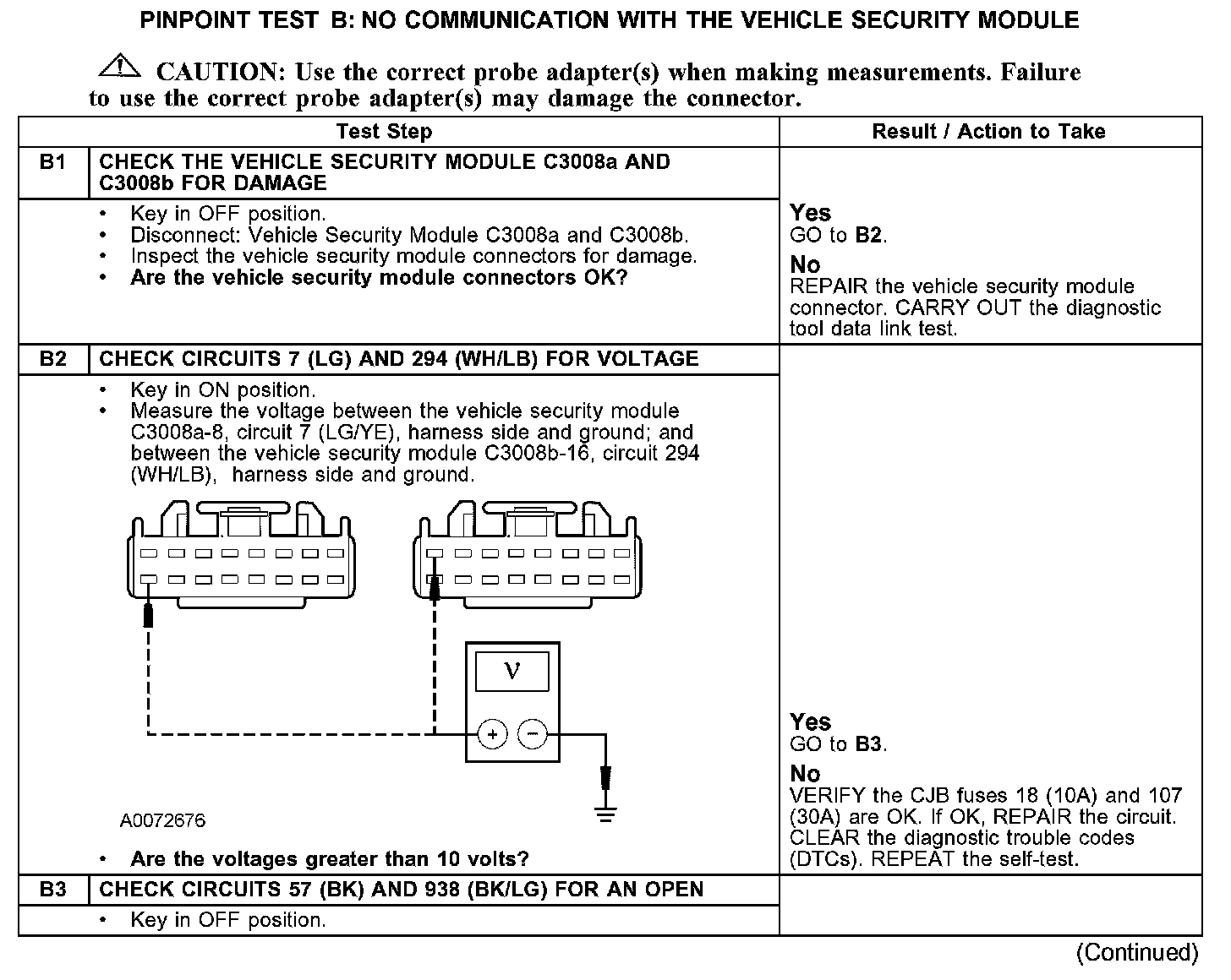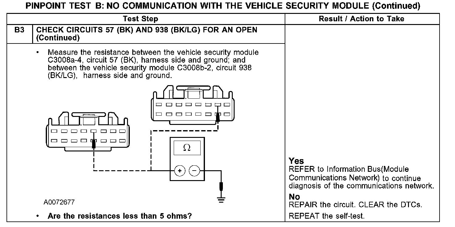 PINPOINT TEST B: NO COMMUNICATION WITH THE VEHICLE SECURITY MODULE