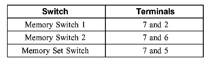 To check the memory set switch LED, connect the positive meter lead to terminal 7 and the negative lead to terminal 1. The meter should indicate greater than 0.3 volts. Reversing the leads, the meter should read OL.