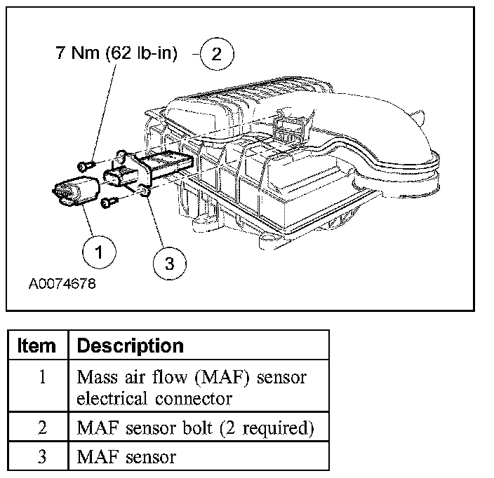 3. Remove the bolts and the MAF sensor.