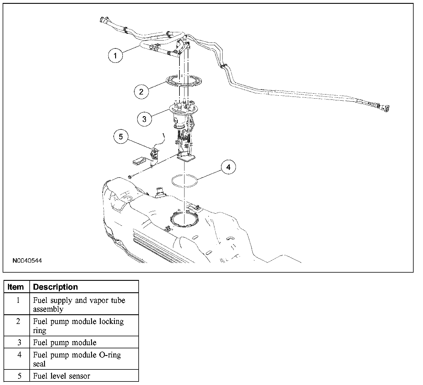 - Lubricate the new fuel pump module O-ring seal with clean engine oil prior to installation.