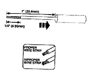 2. Strip 1/4" (6.35mm) of insulation from each wire end, taking care not to nick or cut wire strands.