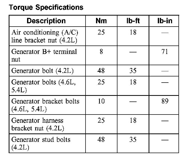 Torque Specifications: