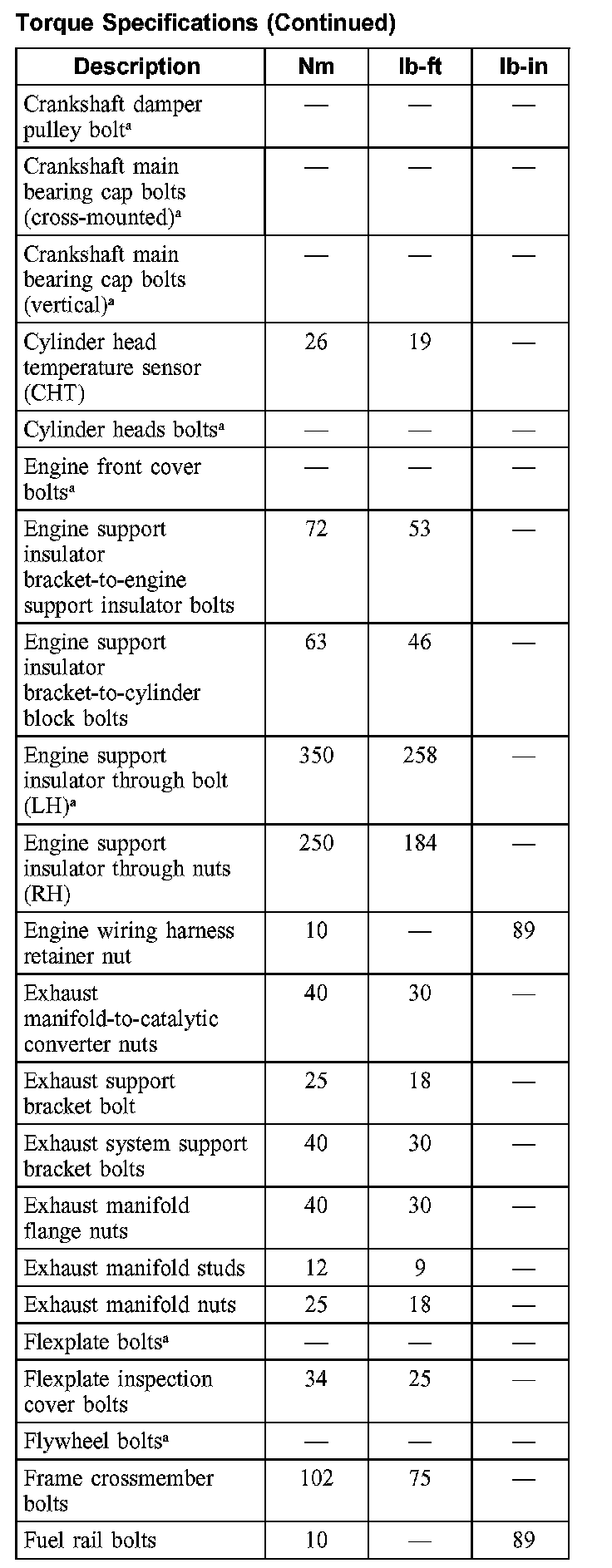 Torque Specifications