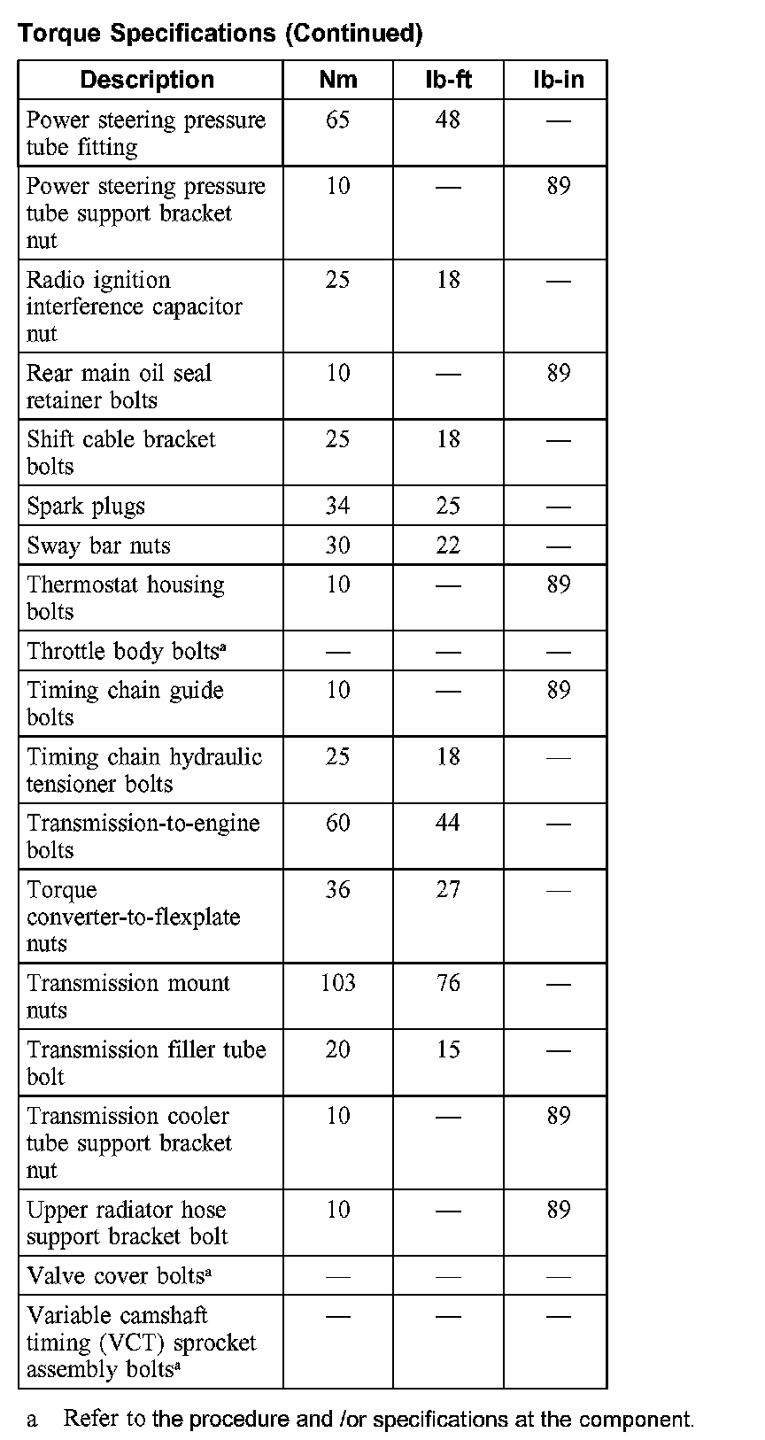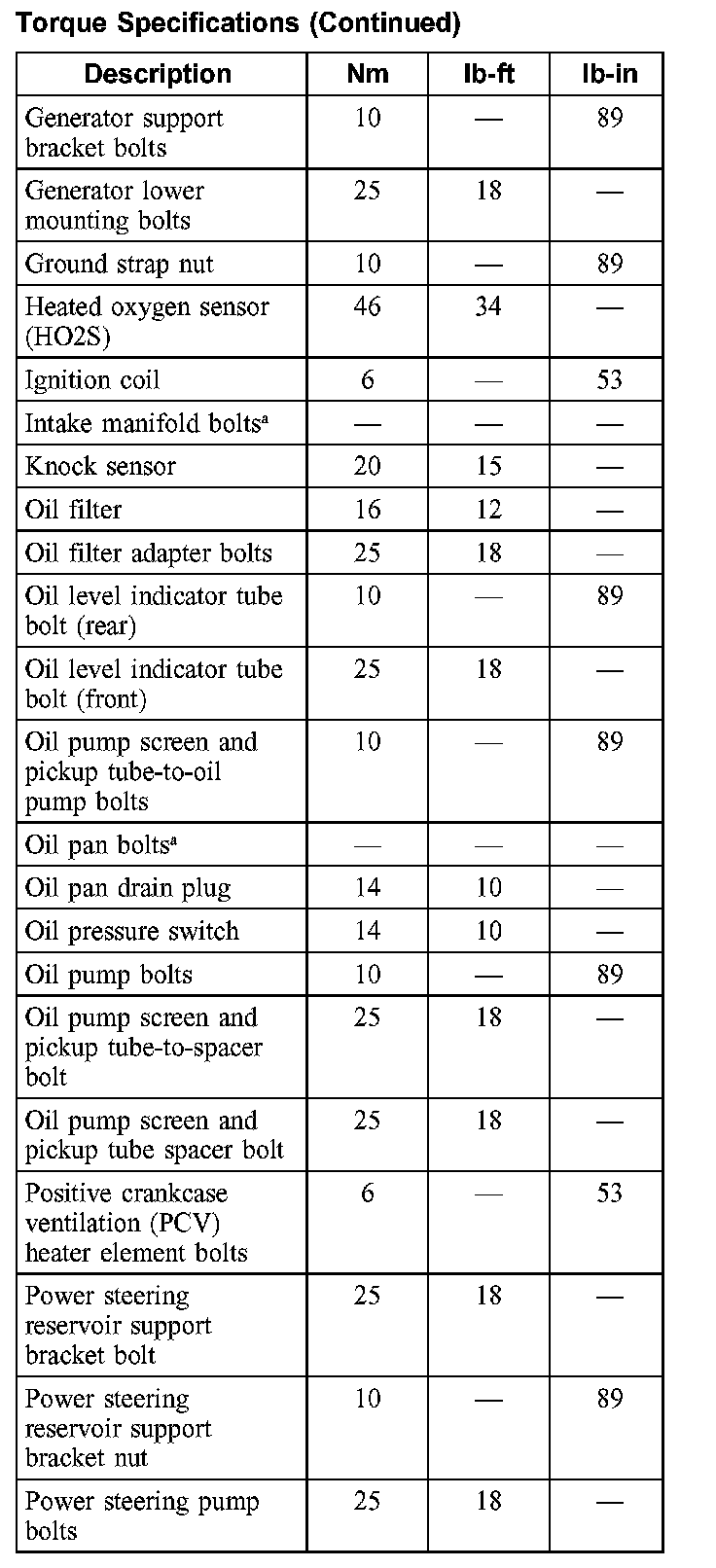 Torque Specifications: