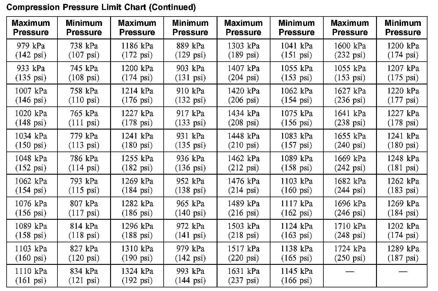 AllData Editors Note - Ford does not provide a cranking pressure specification, only an acceptable range.The indicated compression pressures are considered within specification if the lowest reading cylinder is at least 75 percent of the highest reading.
