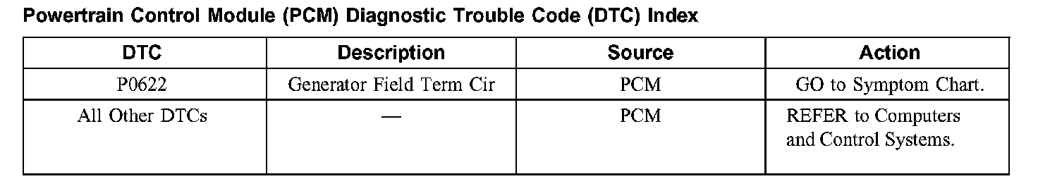 Powertrain Control Module (PCM) Diagnostic Trouble Code (DTC) Index
