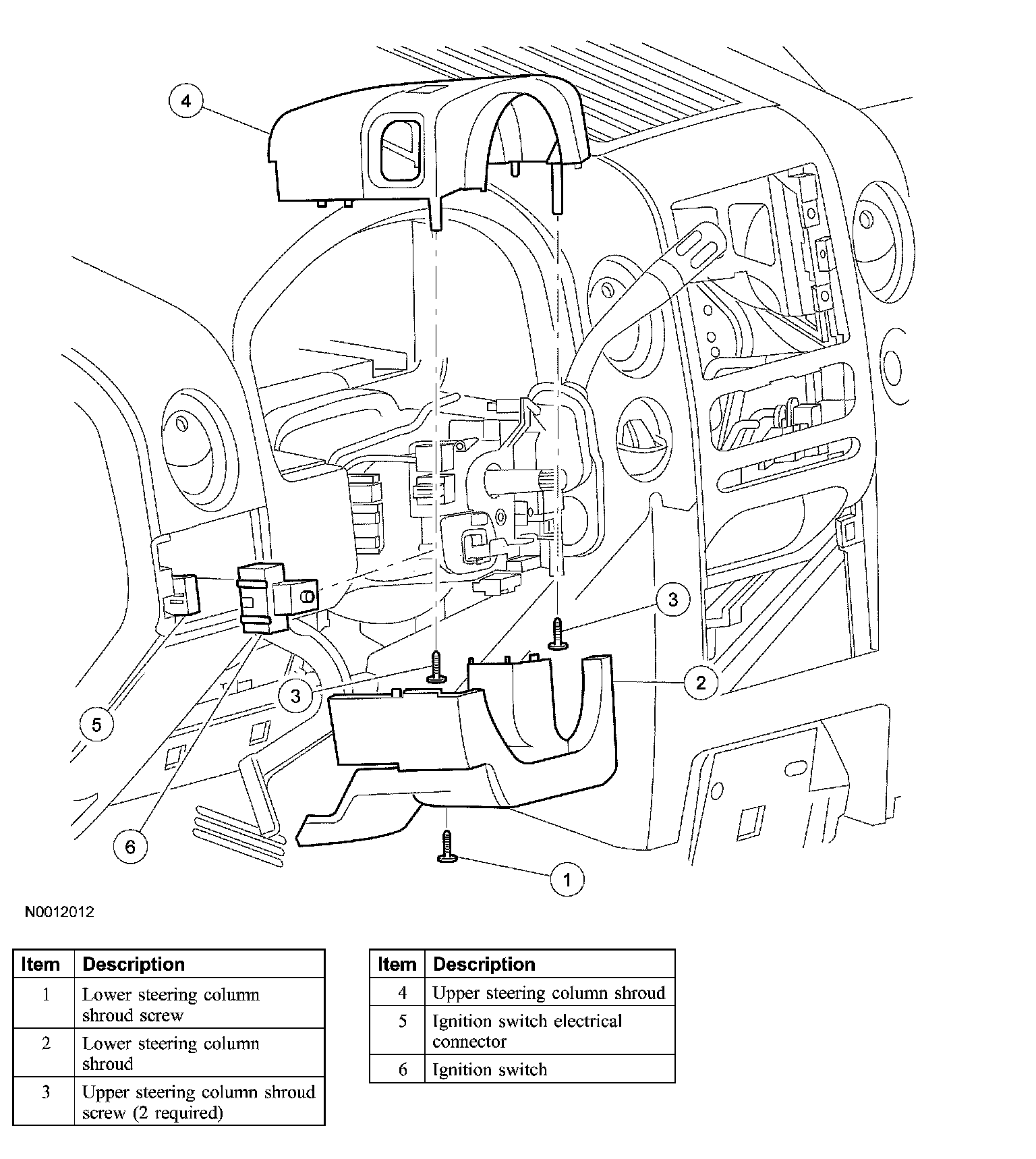 CAUTION: Do not remove the ignition lock cylinder and the ignition switch at the same time or damage to the column can result.