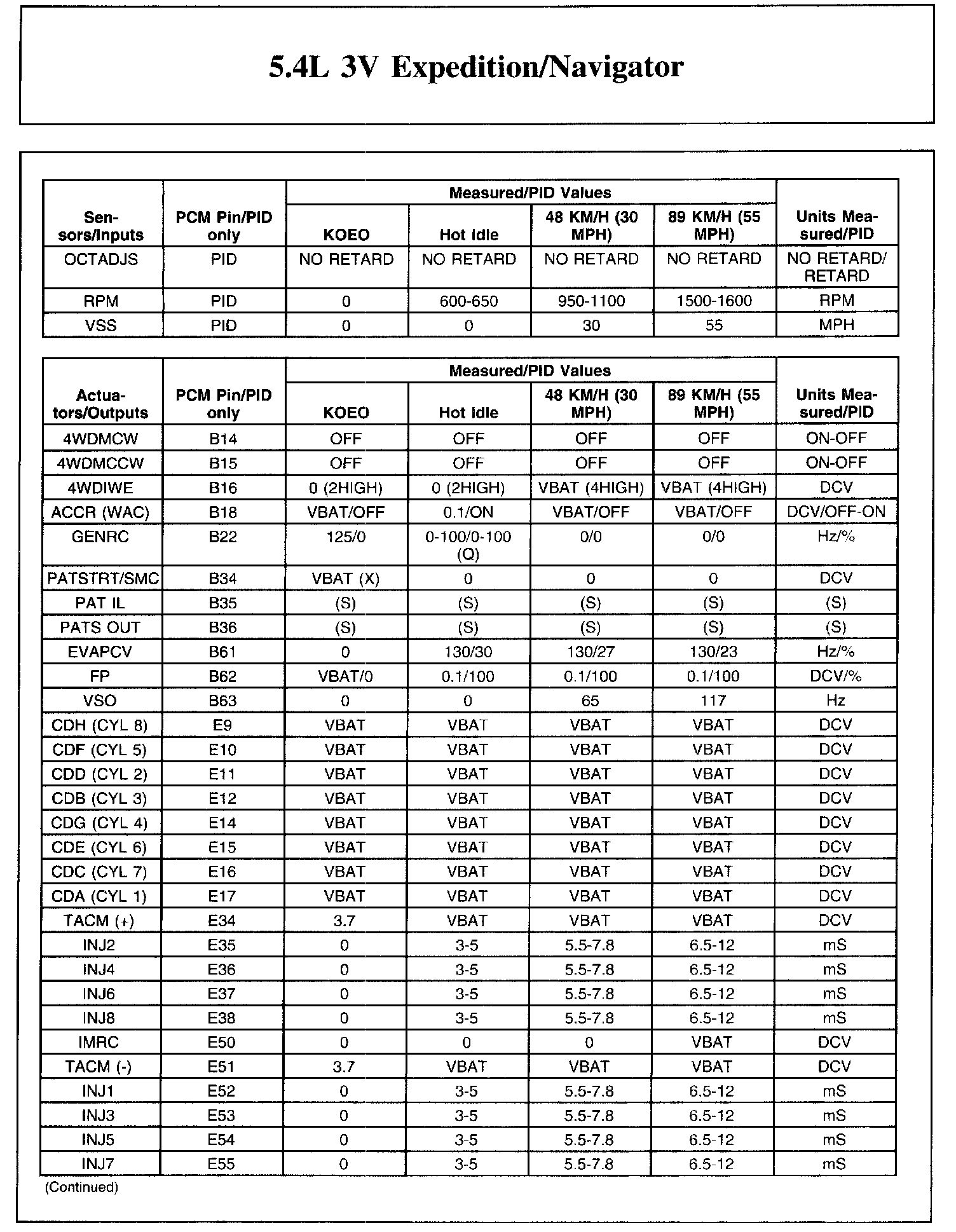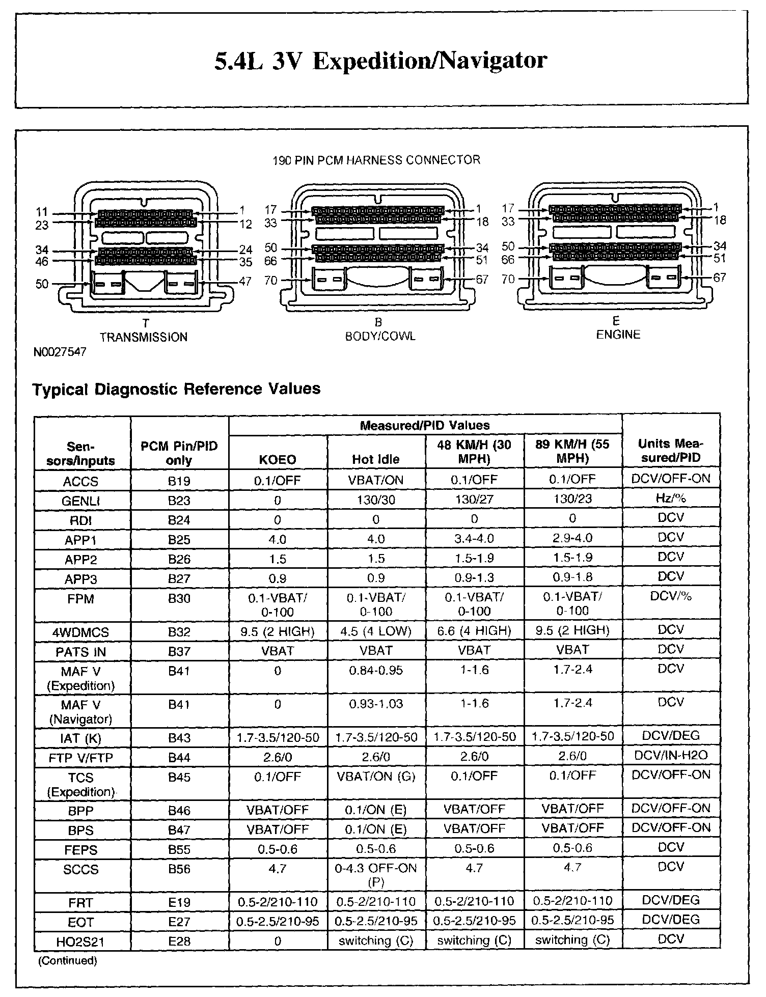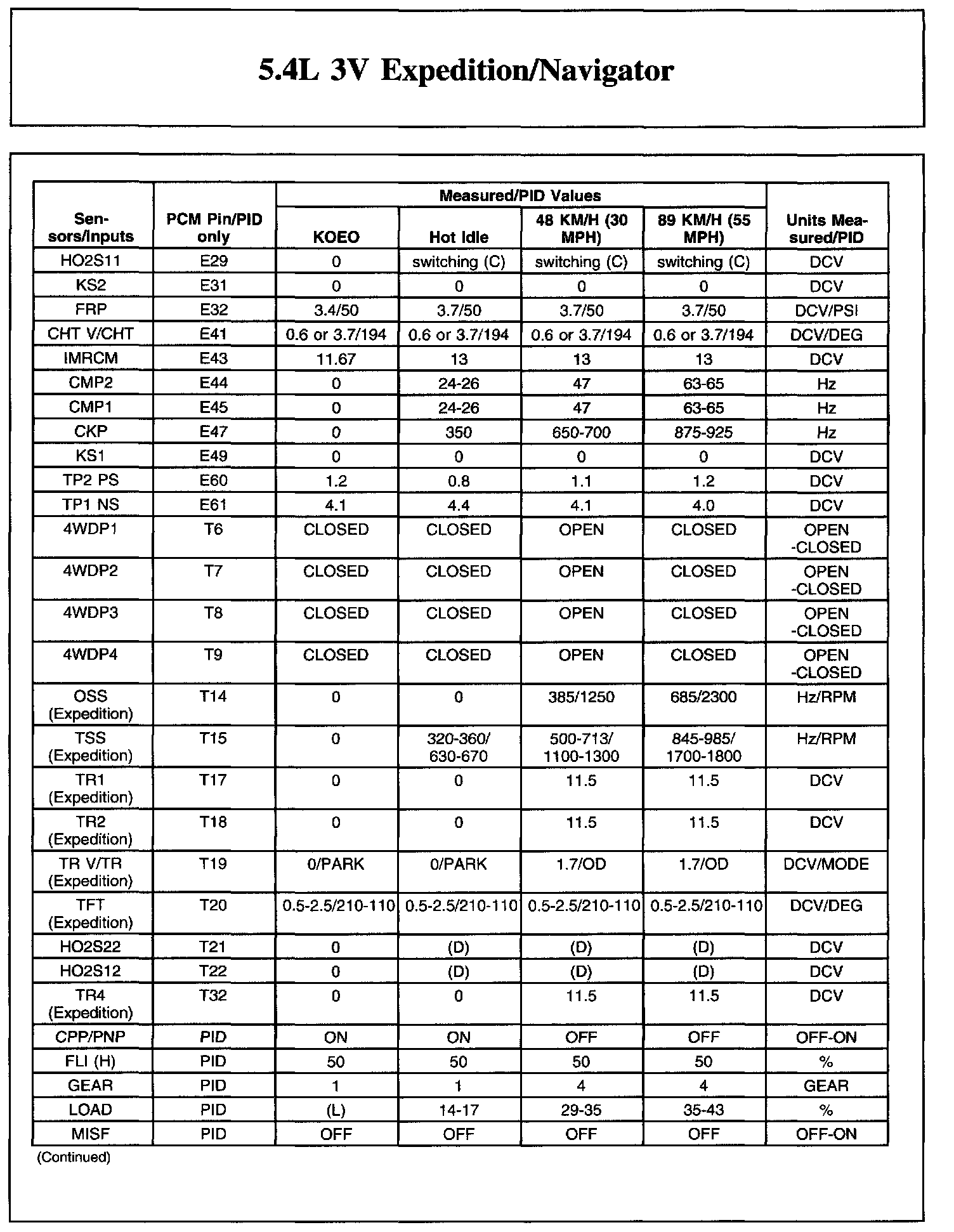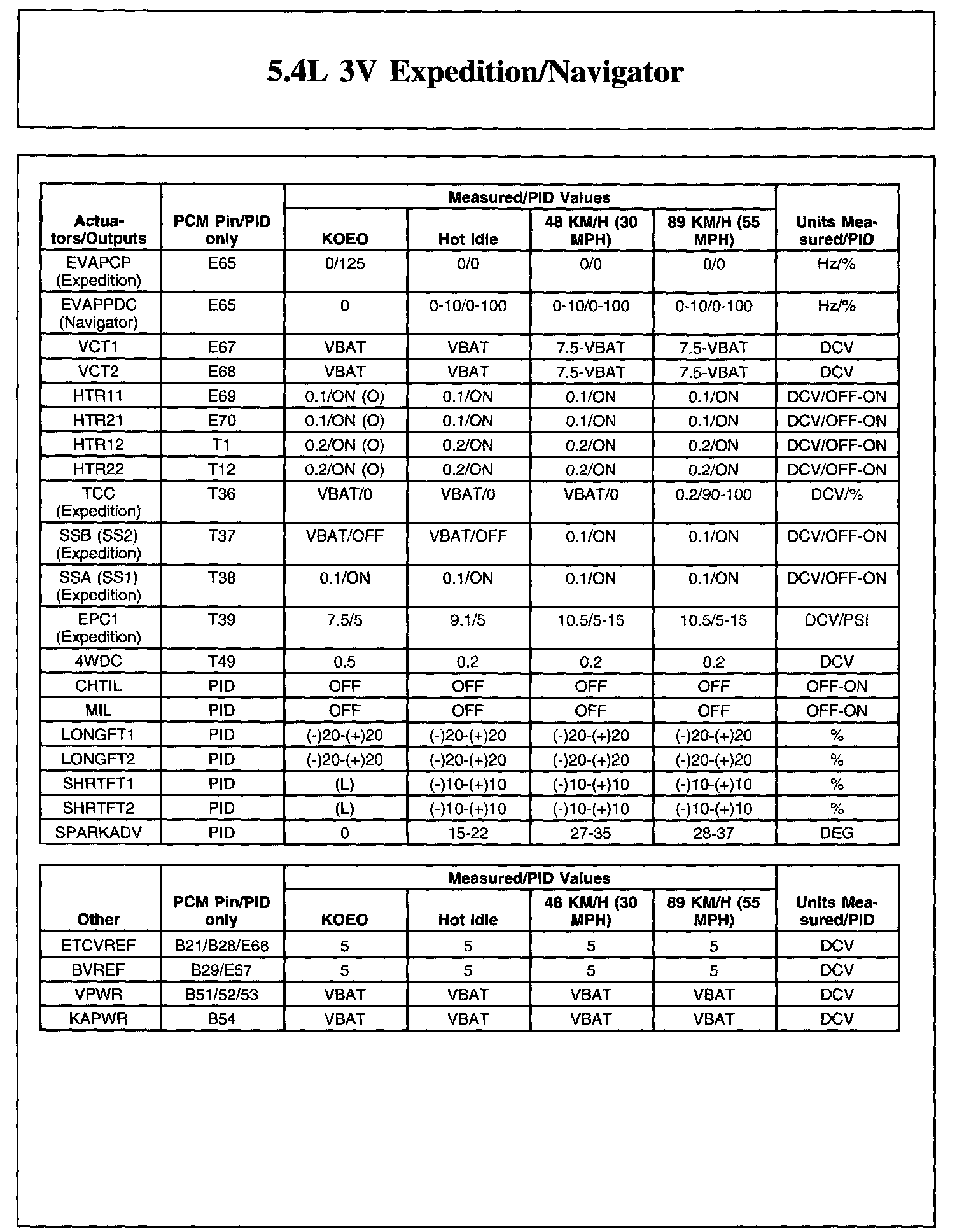 The Typical Diagnostic Reference Value Charts do not display fault parameter identifications (PIDs). These are PIDs which indicate a hard fault with the circuit. They display a value of YES or NO and are PIDs ending with the letter F.