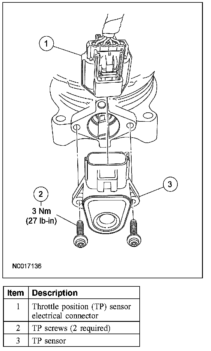 NOTE: When installing the new TP sensor, make sure that the radial locator tab on the TP sensor is aligned with the radial locator hole on the throttle body.
