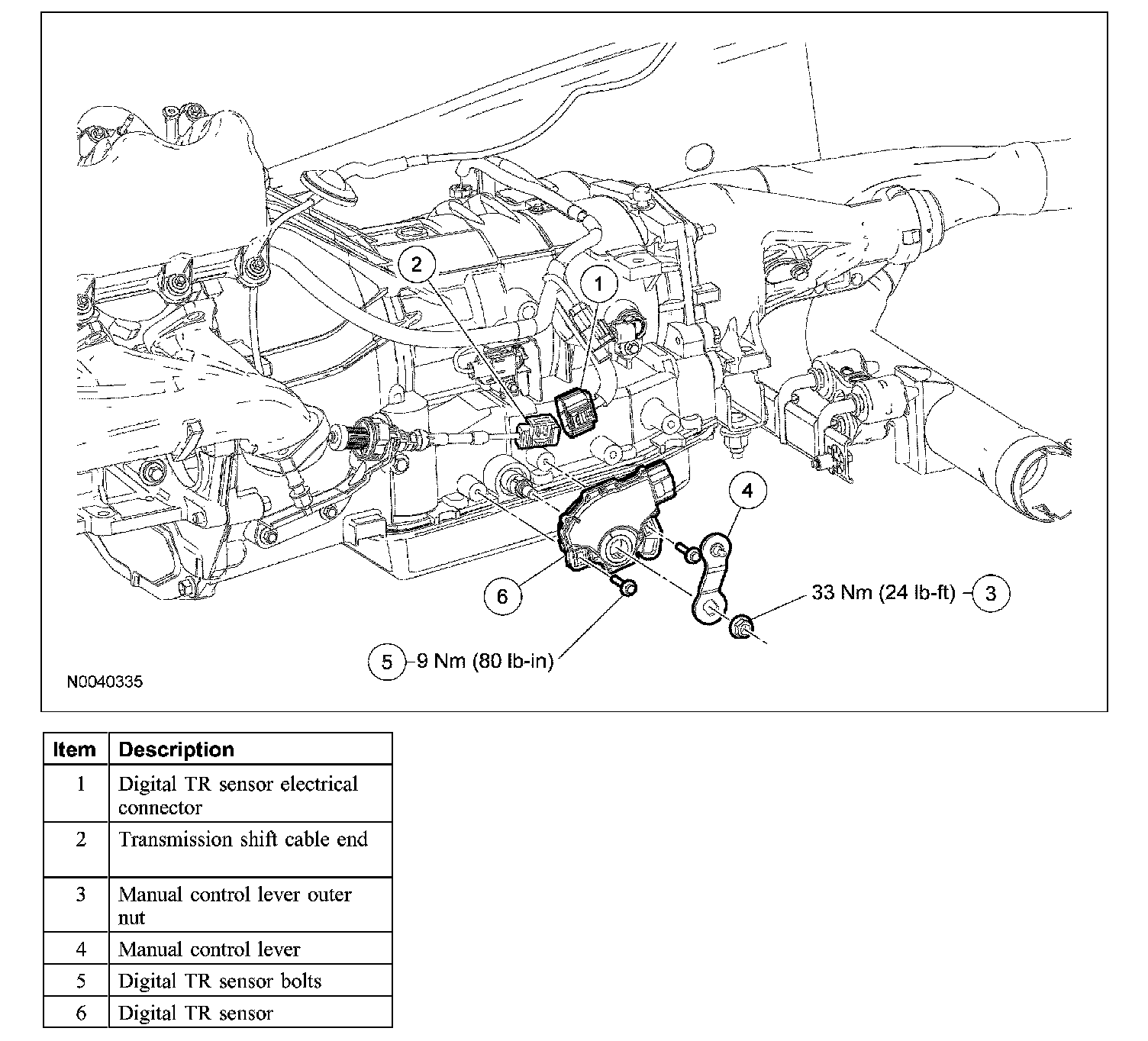 1. Install the digital TR sensor and loosely install the bolts.