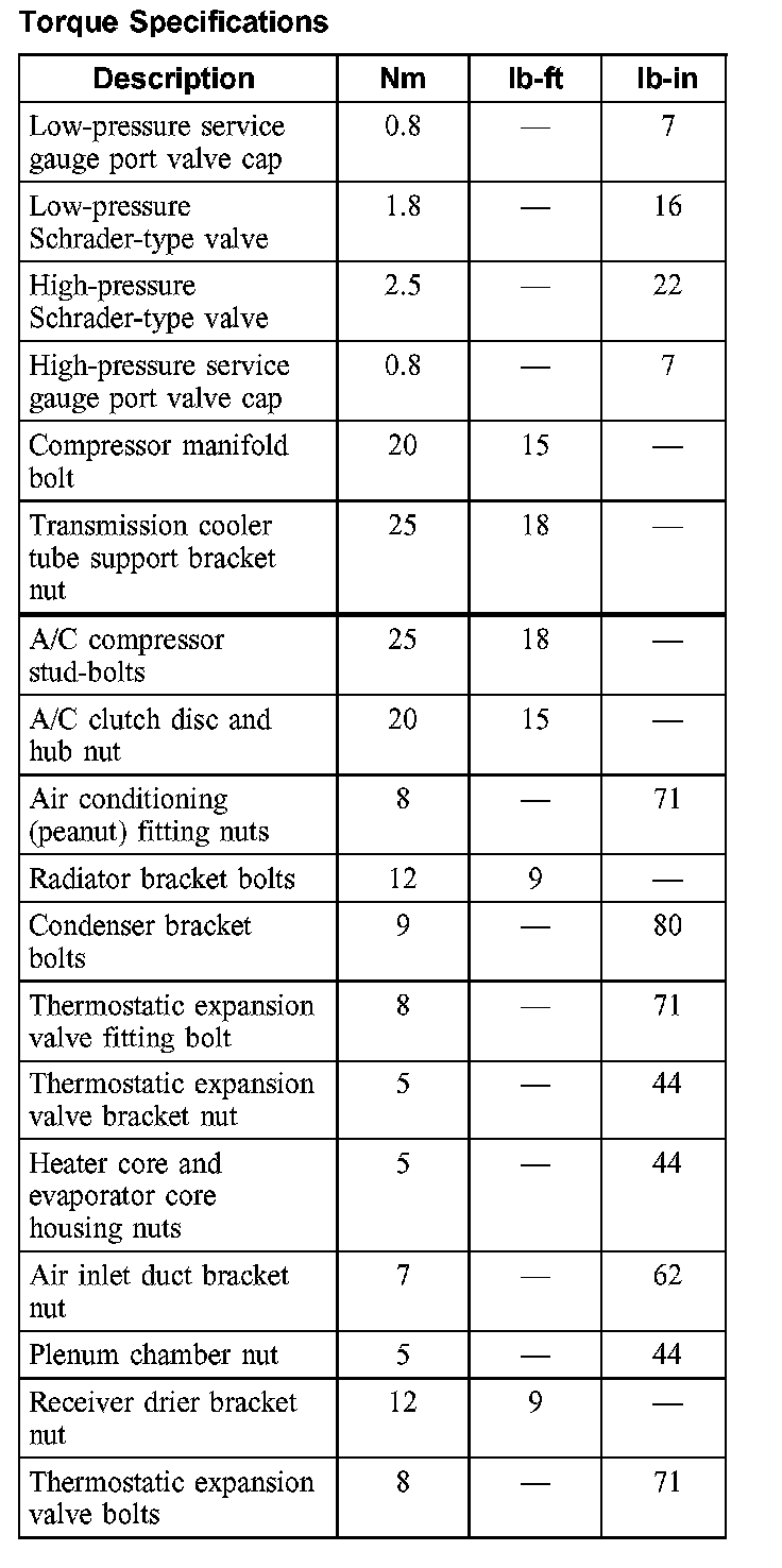 Torque Specifications:
