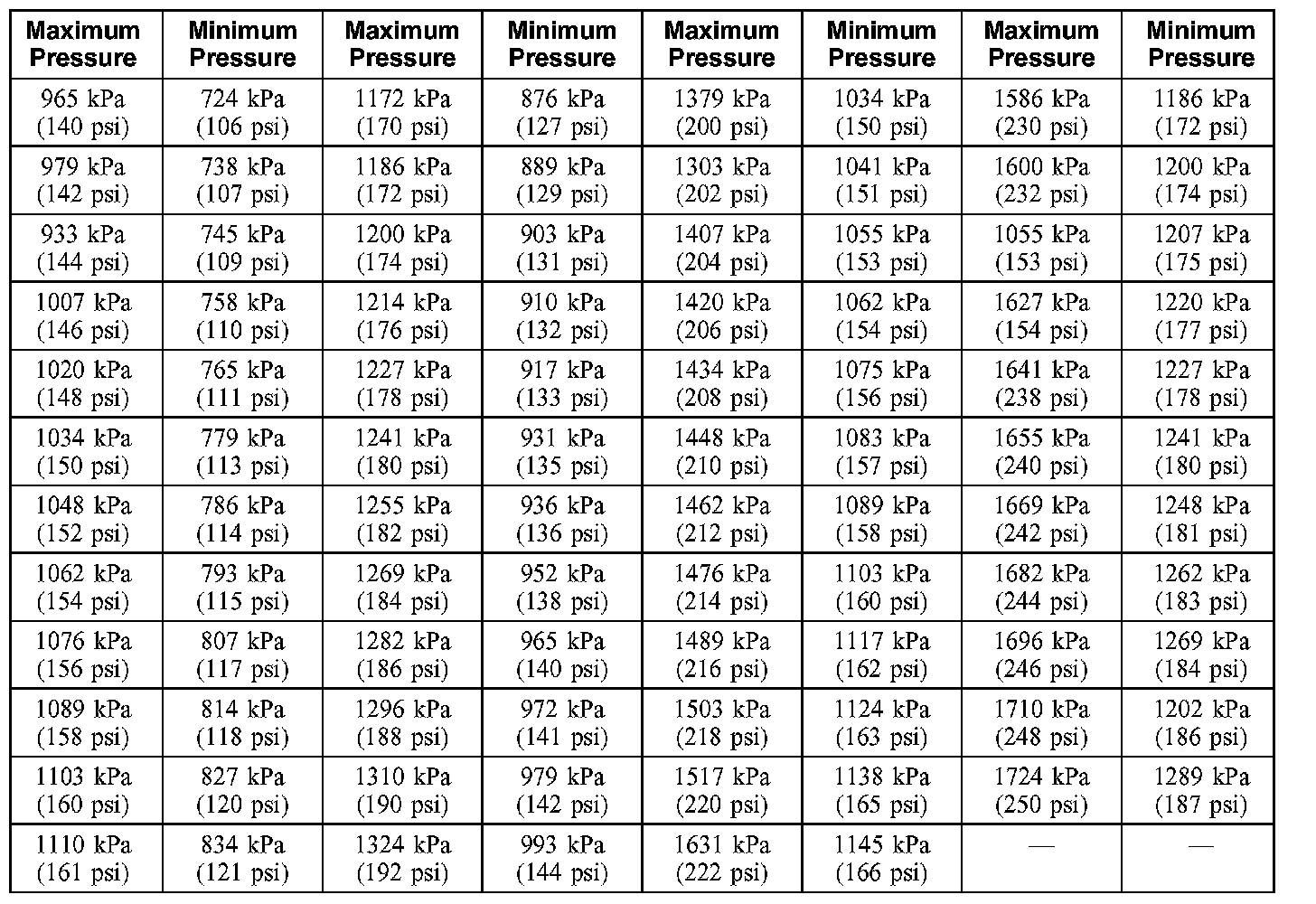 Compression Pressure Limit Chart (Part 1):