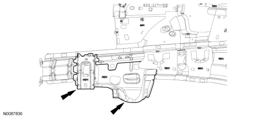 NOTE: Observe prescribed welding procedures when carrying out any repair to unibody/frame structure. For additional information, refer to Welding Precautions - Steel .