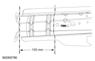 - Scribe a cut-line 40 mm (1.57 in) to 50 mm (1.96 in) rearward of the initial frame rail cut, on the outer portion of the rail assembly. Using a cut-off wheel or equivalent, cut and remove that portion of outer rail only, this will create an overlap joint.
