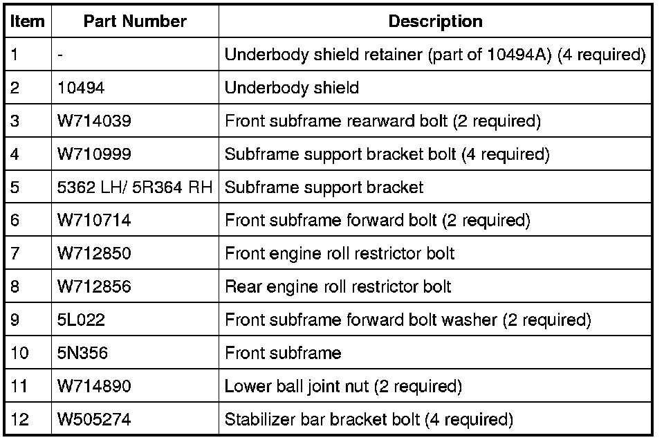 Tighten the 4 new subframe bracket-to-body bolts to 55 Nm (41 lb-ft).