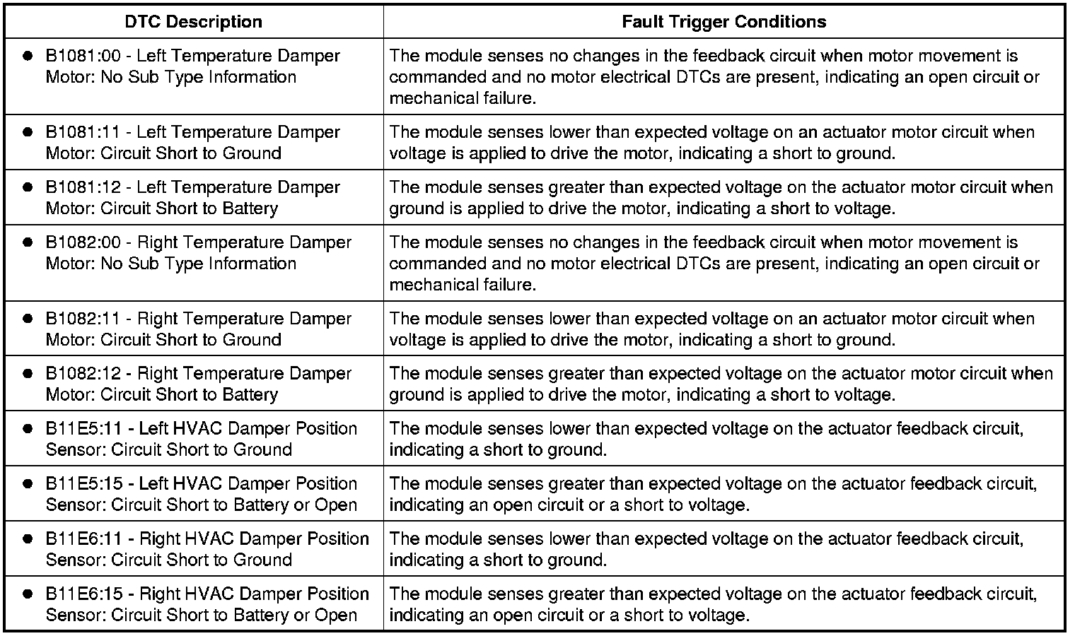Under normal operation, to rotate the temperature blend door actuator, the HVAC module supplies voltage and ground to the temperature blend door actuators through the door actuator motor circuits. To reverse the temperature blend door actuator rotation, the HVAC module reverses the voltage and ground circuits.