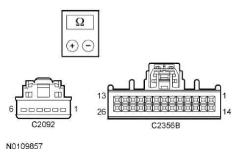- For DTC B1082:11, measure the resistance between HVAC module C2356B-15, circuit CH213 (BN/GN), harness side and HVAC module C2356B-14, circuit CH212 (BU/OG), harness side.