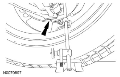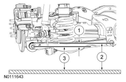 1. Measure the distance between the flat level surface and the center of the lower control arm-to-subframe bolt (measurement 2).