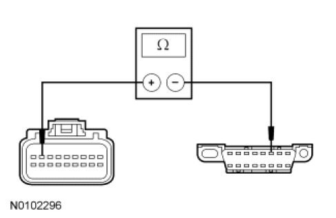 - Measure the resistance between the C-CM C1582-8, circuit VDB04 (WH/BU), harness side and the DLC C251-6, circuit VDB04 (WH/BU), harness side.
