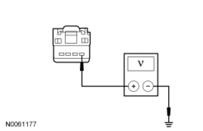 - Measure the voltage between the SASM C2412-1, circuit CBP31 (BU/OG), harness side and ground.