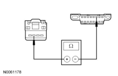 - Measure the resistance between the SASM C2412-3, circuit VDB04 (WH/BU), harness side and the DLC C251-6, circuit VDB04 (WH/BU), harness side.