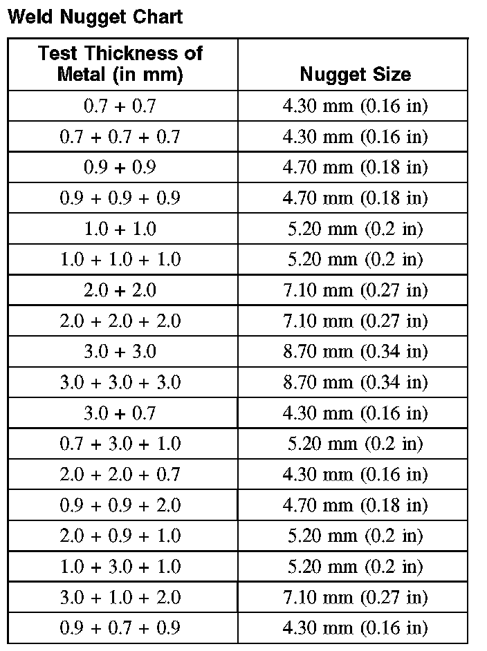 Weld Nugget Chart: