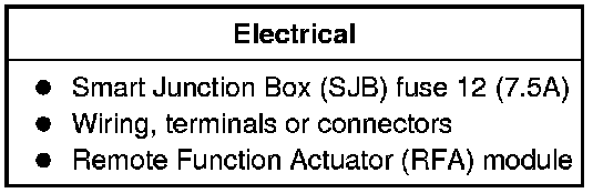 9. If the DTCs retrieved are related to the concern, go to DTC Charts. For all other DTCs, refer to the Diagnostic Trouble Code (DTC) Chart in Multifunction Electronic Modules Diagnostic Trouble Code (DTC) Chart. Remote Function Actuator (RFA) Module