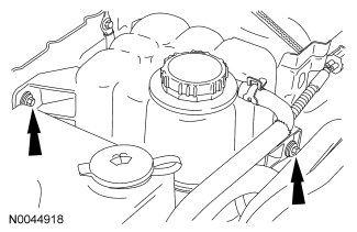 8. Remove the 2 degas bottle bolts and position the degas bottle aside.