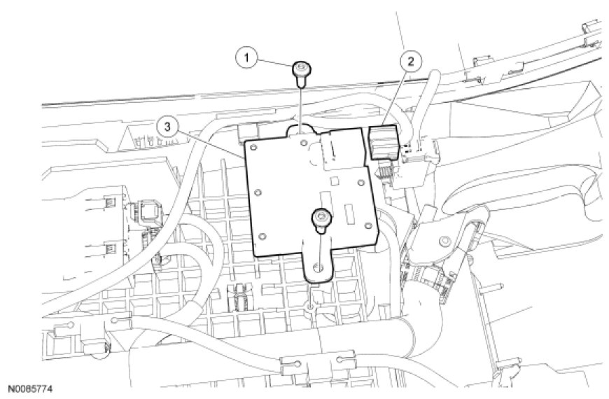 2. Remove the 2 bolts and the Interior Lighting Control Module (ILCM).