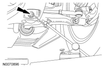 1. Measure the distance between the flat level surface and the center of the lower control arm-to-subframe bolt (measurement 2).