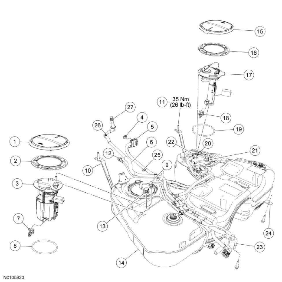 Fuel Tank And Filler Pipe - Exploded View