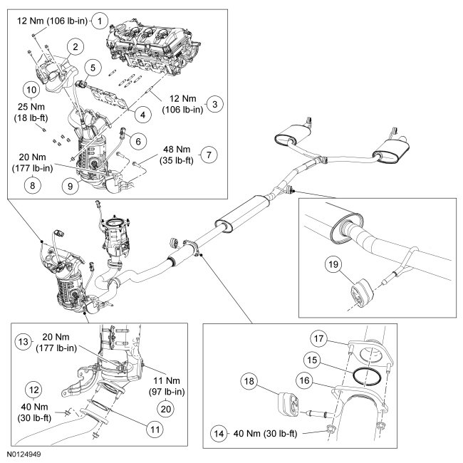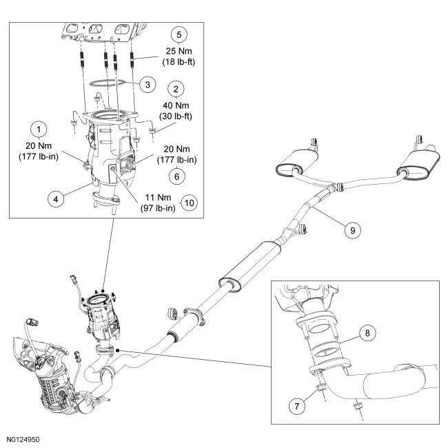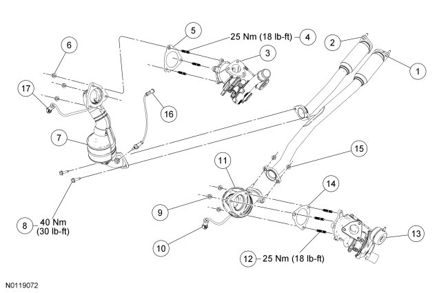 3.5L Gasoline Turbocharged Direct Injection (GTDI) LH and RH Catalytic Converters and Exhaust Flexible Pipes