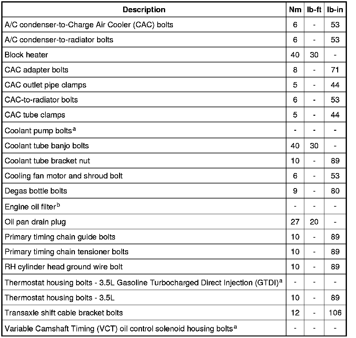 Torque Specifications