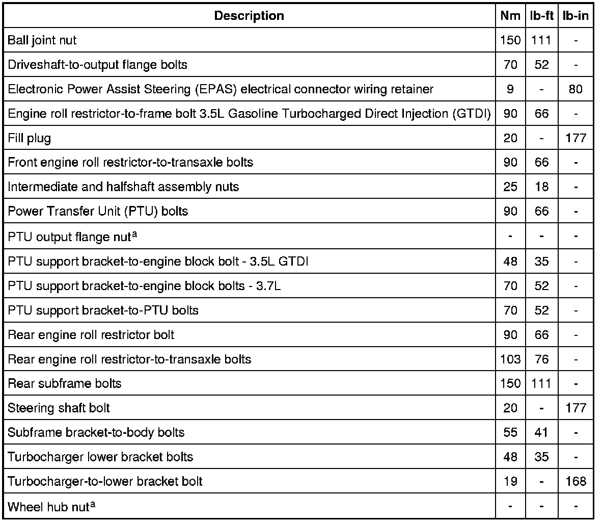 Torque Specifications