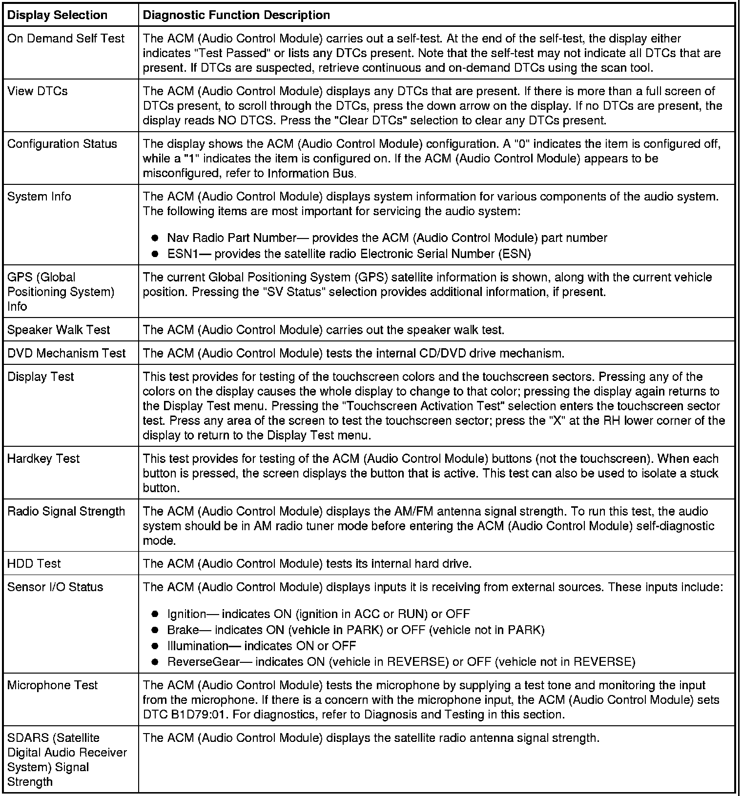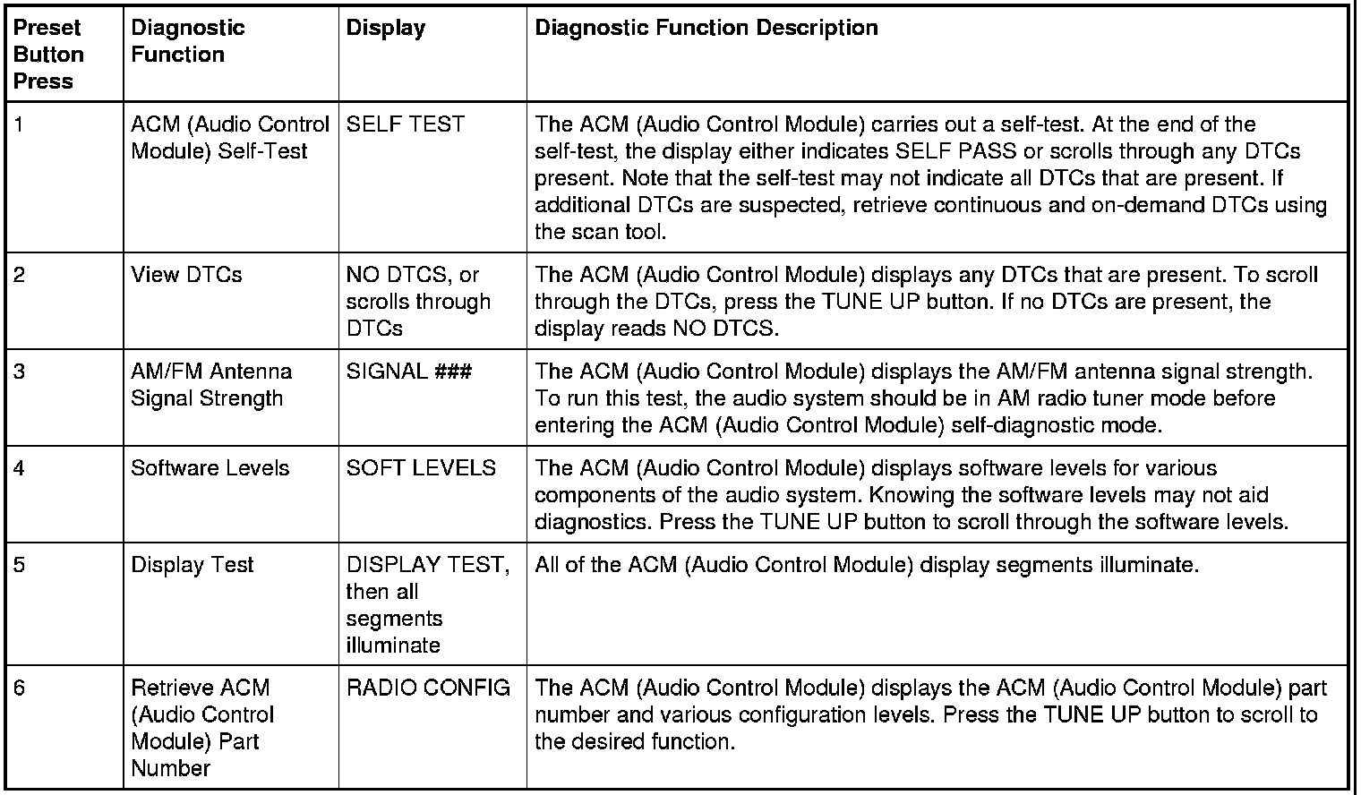 Audio Control Module (ACM) Self-Diagnostic Mode