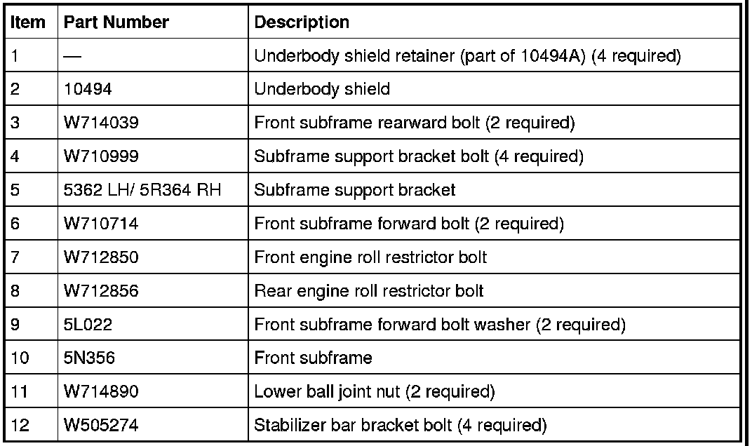 Tighten the 4 new subframe bracket-to-body bolts to 55 Nm (41 lb-ft).