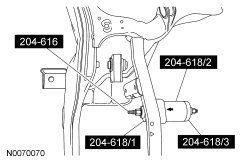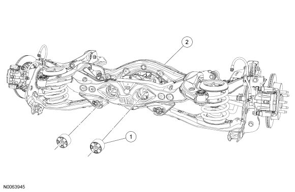 NOTE: When installing the RDU (Rear Drive Unit) bushing, Rear Drive Unit (RDU) Bushing (65 mm) Remover/Installer 204-618/2 will fall away as the RDU (Rear Drive Unit) bushing is installed into the subframe. The Rear Drive Unit (RDU) Bushing (70 mm) Remover/Installer does not control the depth of the bushing. The RDU (Rear Drive Unit) bushing is fully seated when the Rear Drive Unit (RDU) Bushing (70 mm) Remover/Installer falls away from the subframe, do not continue to tighten the Rear Drive Unit (RDU) Bushing (70 mm) Remover/Installer.