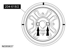 1. NOTE: Make sure the alignment marks on the Rear Drive Unit (RDU) Bushing (70 mm) Remover/Installer 204-616/2 are aligned with the anti-rotation tabs on the RDU (Rear Drive Unit) bushing.