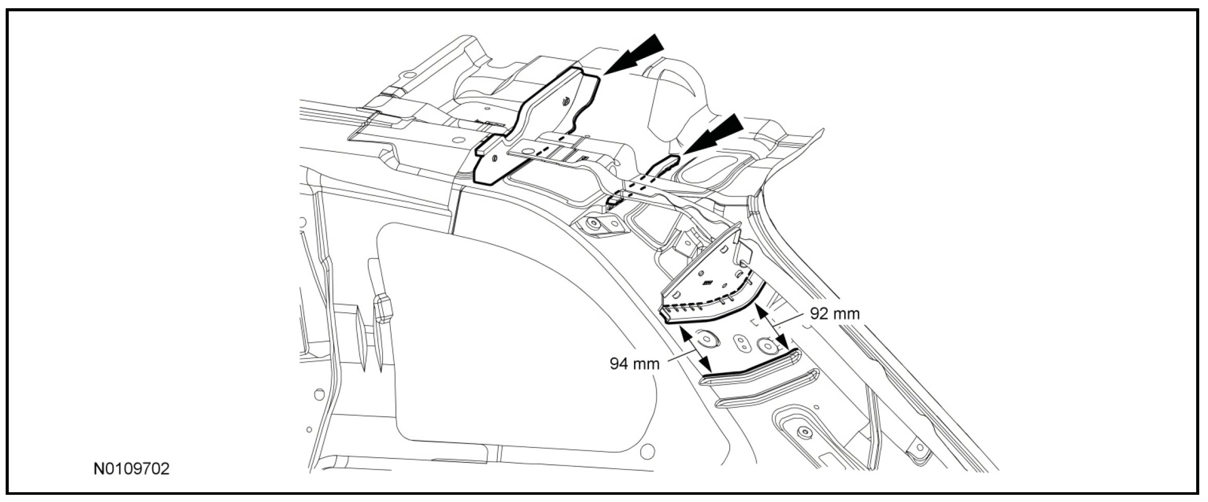 NOTICE: Sectioning procedures can only be carried out on the outer body side panel. No sectioning repairs can be carried out on inner reinforcement panels. Failure to follow these instructions may compromise the structural integrity of the vehicle.