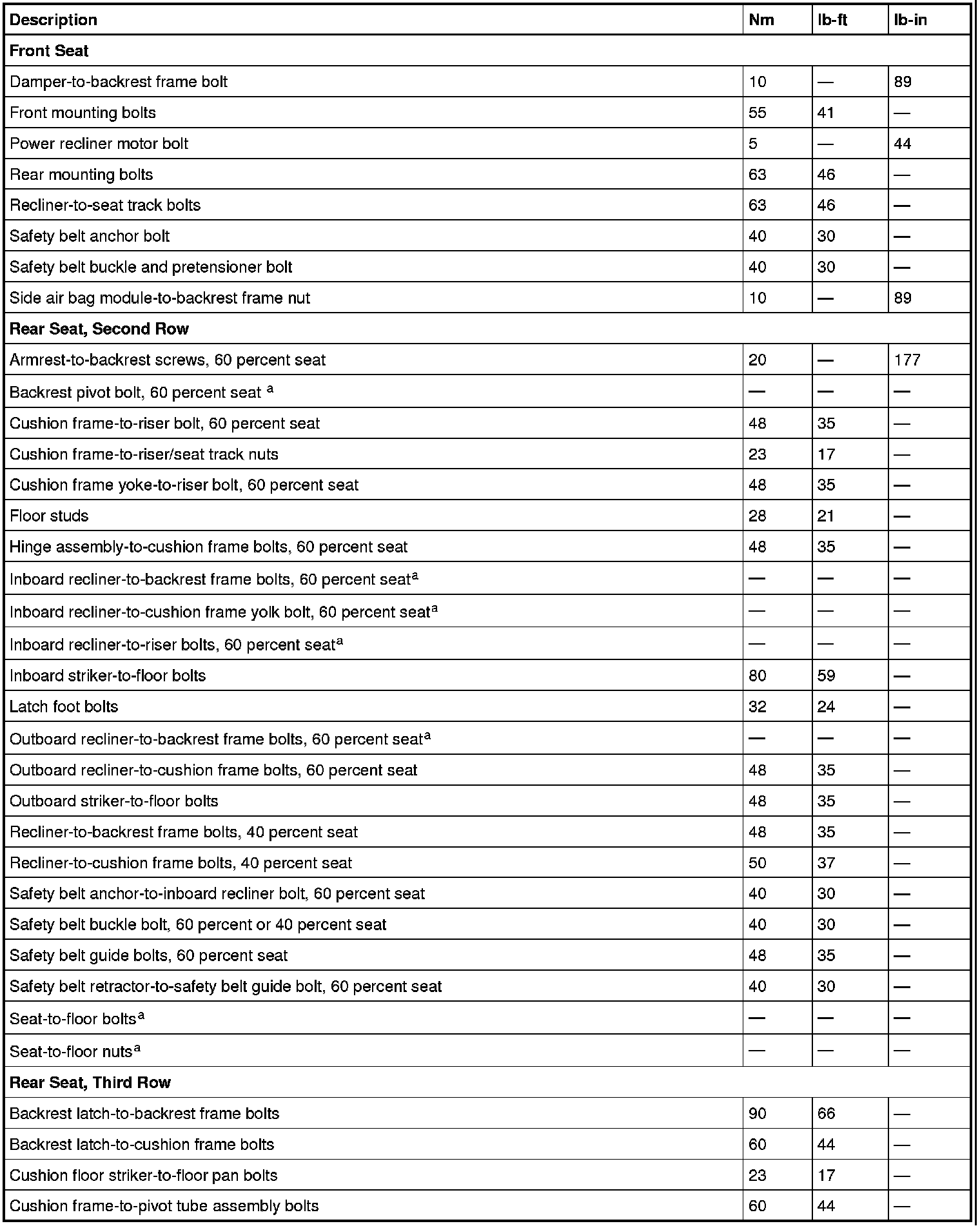 Torque Specifications