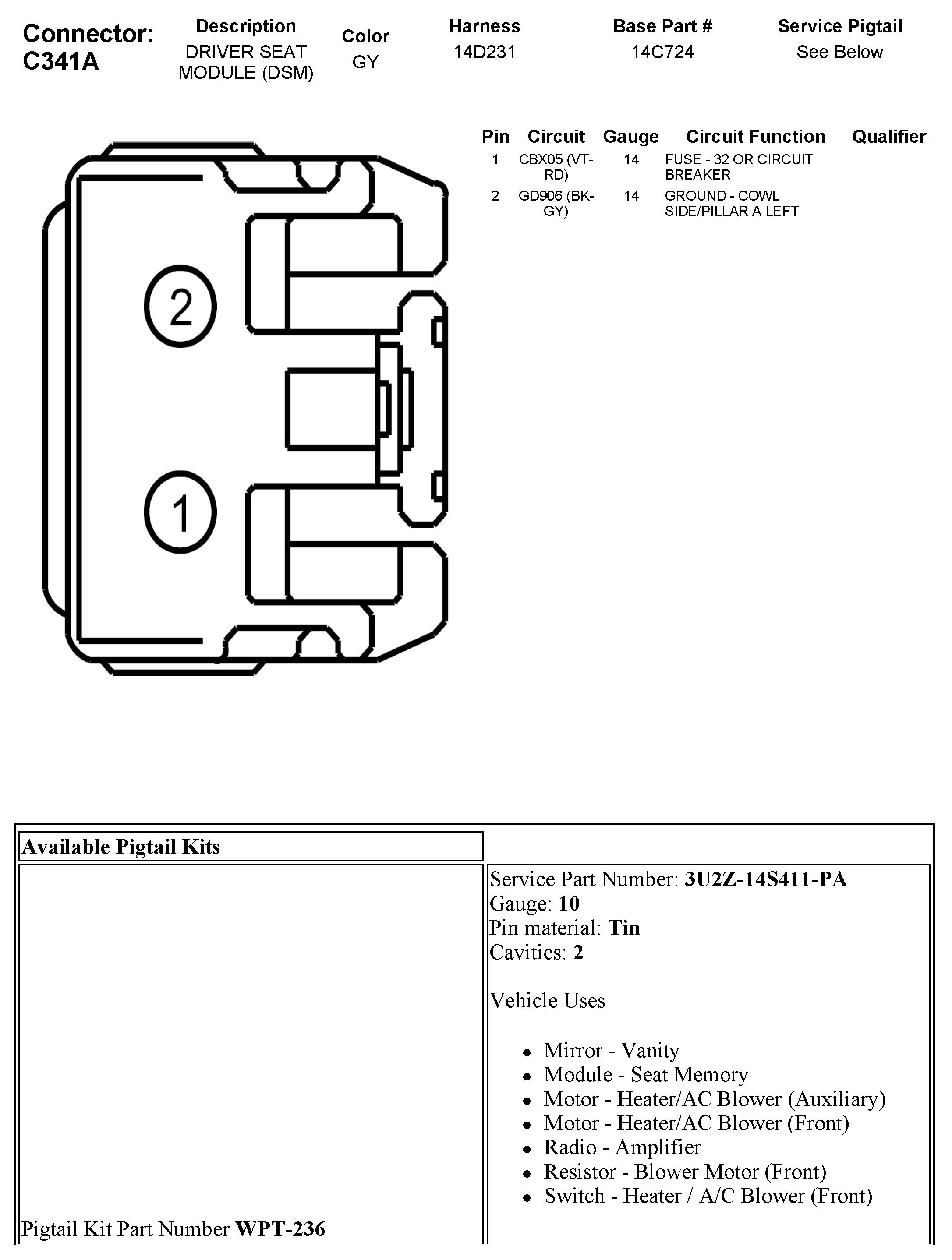 C341A Driver Seat Module (DSM)