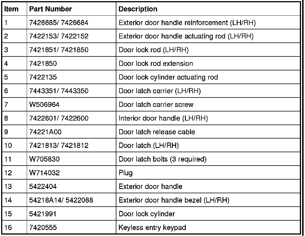 Front Door Handles, Locks and Latches - Exploded View