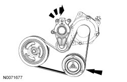 5. Release the tensioner and remove the drive belt from the A/C compressor pulley.