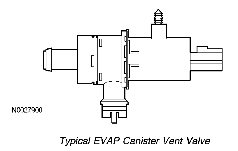The EVAP canister vent valve (located near the EVAP canister) is part of the enhanced EVAP system controlled by the PCM. During the EVAP leak check monitor, the EVAP canister vent valve seals the EVAP canister from the atmospheric pressure. This allows the EVAP purge valve to achieve the target vacuum in the fuel tank during the EVAP leak check monitor.
